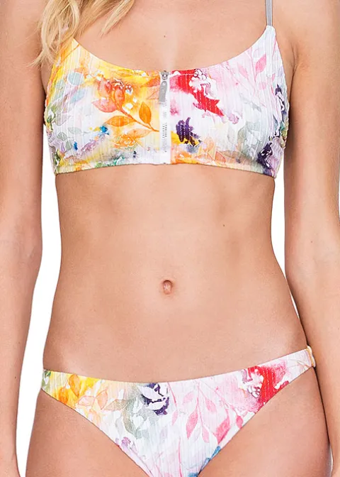 Reinventing the wheel is a difficult thing to do in fashion, but leave it to a master designer like Gottex and it can be wonderful. This bikini is a watercolour style reimagining of the classic floral, and it is just as eye catching, gorgeous and enchanting as its source material. This version has a zip up detail, is underwired and has a low rise brief.