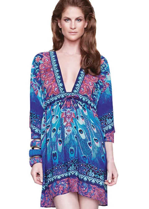 Exotic Peacock is a wonderful design that’s inspired by the artwork and traditions of the Middle East. The deep complexity of the design brings history and the natural world together into one place. This beach dress also features an adjustable drawstring waist for perfect fit and a v-neck for a little extra tanning and a lot more dramatic effect.