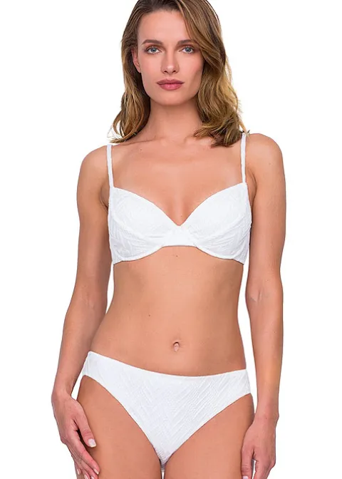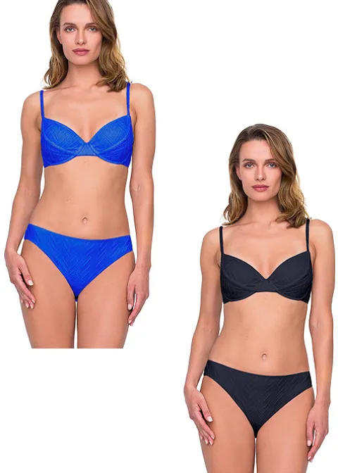 Jazz is an instant classic of a design. Gottex specializes in striking items of swimwear fashion that are colourful or exuberant. But a classic is always a welcome addition, and it is something that Gottex always remembers to include in their portfolios. Jazz is a minimalist chevron pattern with a textured finish and it is eye catching but tasteful. This bikini version is underwired and accessories are available here at UK Swimwear.