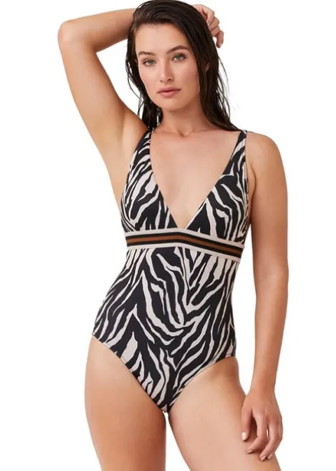 Luma is a stunning range of timeless classics with a big and bold twist. These designs are beautiful with a classic zebra print that we love the look of. It is a big and bold print though, with a new colour scheme and somewhat oversized stripes. This makes it head turning and full of potential. This print has a removable soft cup for comfort and for a customised fit. Variations of this swimsuit are available.