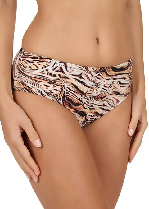 Felina Fancy Fur is a wonderful new take on the timeless tradition of animal prints. Here, the tiger, one of the most popular faux fur patterns, has been given a marble or kaleidoscope effect. The change is a subtle one, but it takes a classic with limitless appeal and gives it a new, abstract and hypnotic look. This version of their brief is a shorty style for greater coverage.
