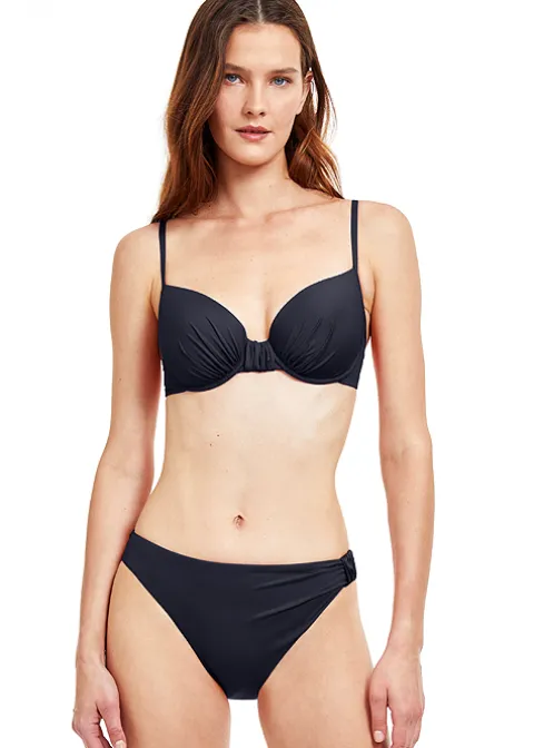 Liv is a range that is all about simplicity that can turn heads. This is the Liv Moulded Bikini, and it is a fine example of this. This bikini is a gorgeous and striking one. This is partly thanks to its gorgeous colour scheme, like the burning spice, denim blue, or classic black. These are all colours that are versatile, with the spice being eye catching in particular. This version has moulded and soft cups for both comfort and for a sculpting effect. It also has two knot detail, one on the top and the bottom each, to maximise the head turning appearance of this bikini.