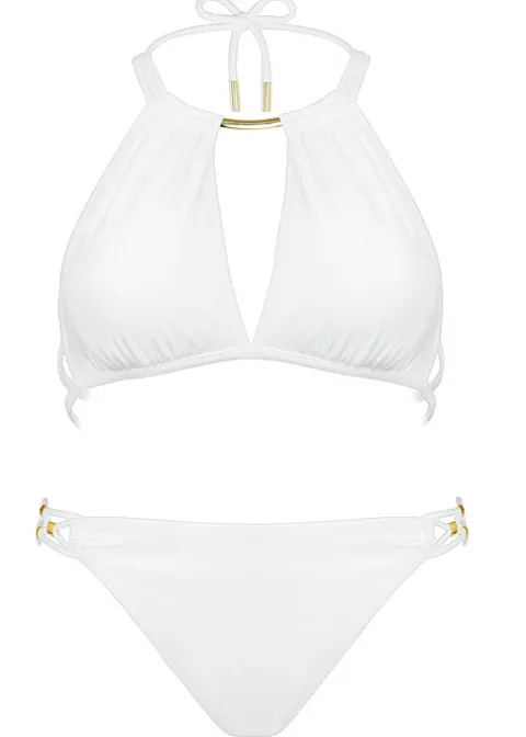 Maryan Mehlhorn makes some of the most striking and gorgeously chic swimwear in the world. Take this for instance, an all white bikini is one of the most daring of items but even though it has a full cut bikini top, it has a plunging middle cut out to make it even more powerful on the eyes. Glam is the right name for this item, with a first impression that is perfectly suited for a starlet or model. This all white number would have been popular with the sex symbols of the Golden Age of Hollywood like Marilyn Monroe and Brigitte Bardot.