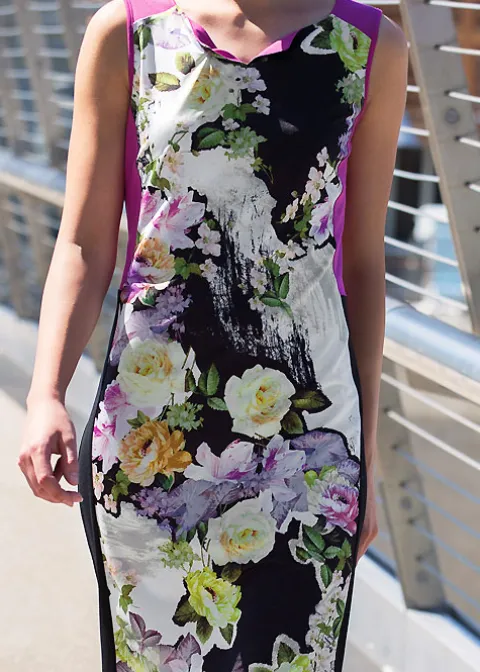 This delightful designer dress is perfect for the woman who wants to look and feel fabulous even though the days are warm. It’s opulent and luxurious look gives way to the softness of the flowers to make you feel beautiful no matter where you are. You might be shopping or simply strolling along the streets that are full of busy cafe’s and bars but either way you can rest assured that you’ll love beautiful.