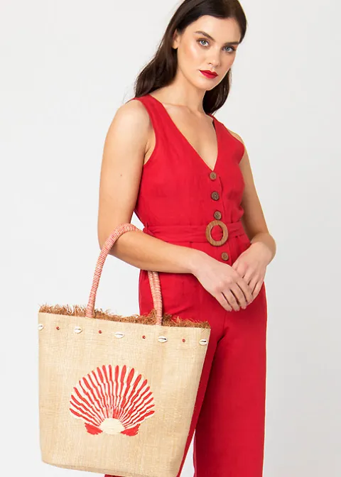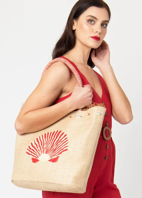 Farah is a great item for those that want something versatile with a laid back aesthetic. This bag uses a woven burlap-like material and the seashell design and rope handles give it the most gorgeous and charming look possible. Farah is a large bag too, and can fit everything you might possibly need at the beach.